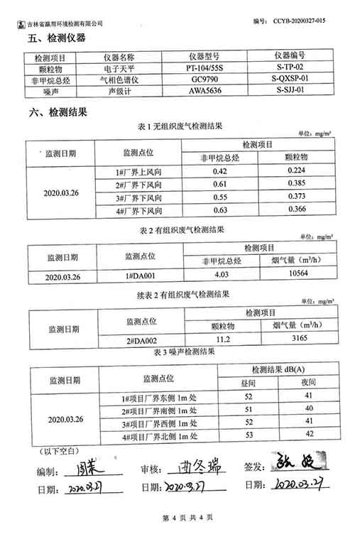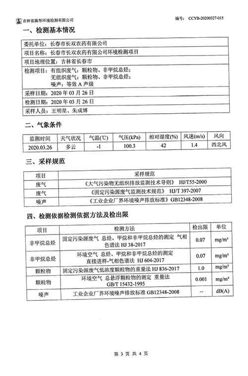 2020年廢氣監(jiān)測報告長雙農(nóng)藥
