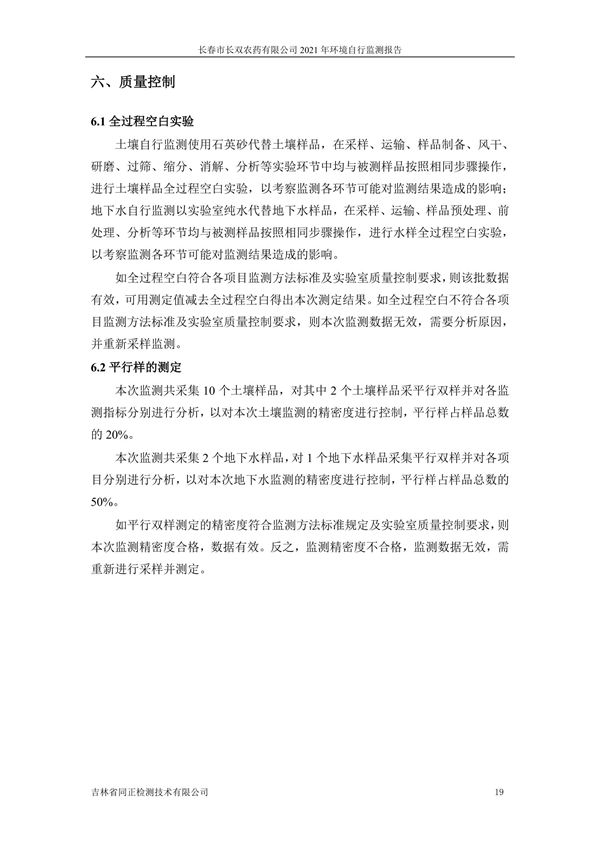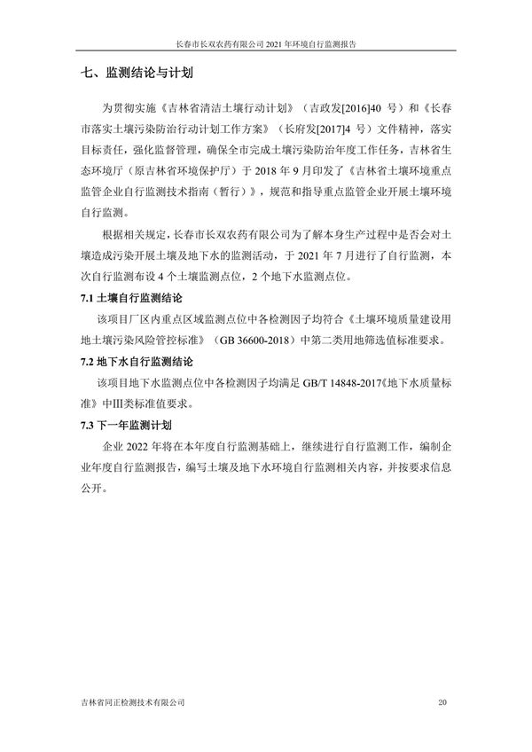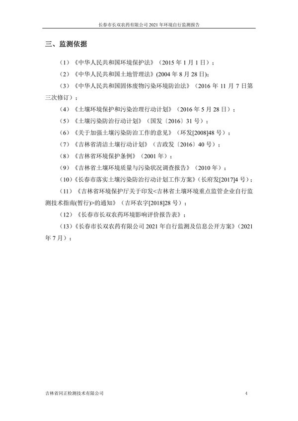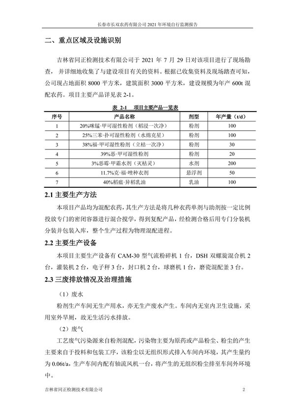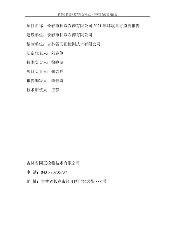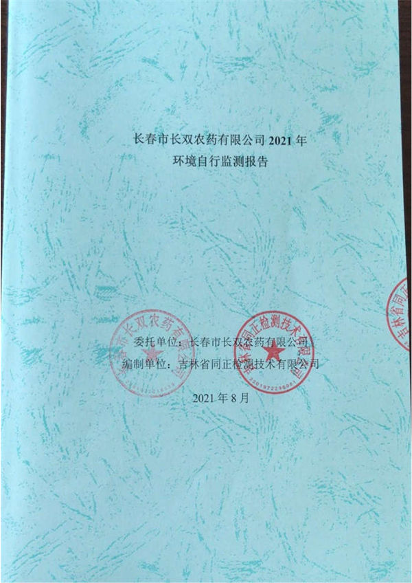長春市長雙農(nóng)藥有限公司2021年環(huán)境自行監(jiān)測報告