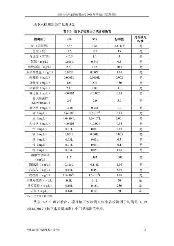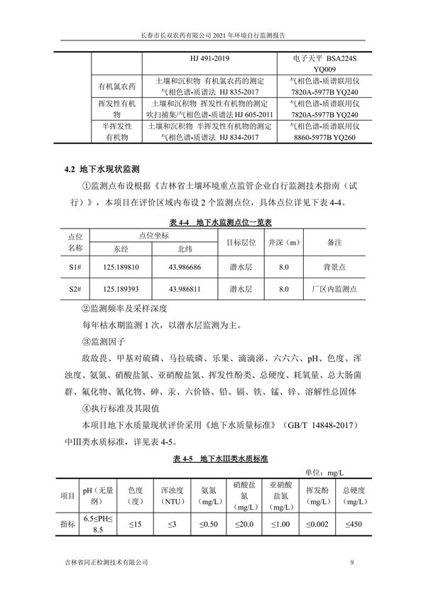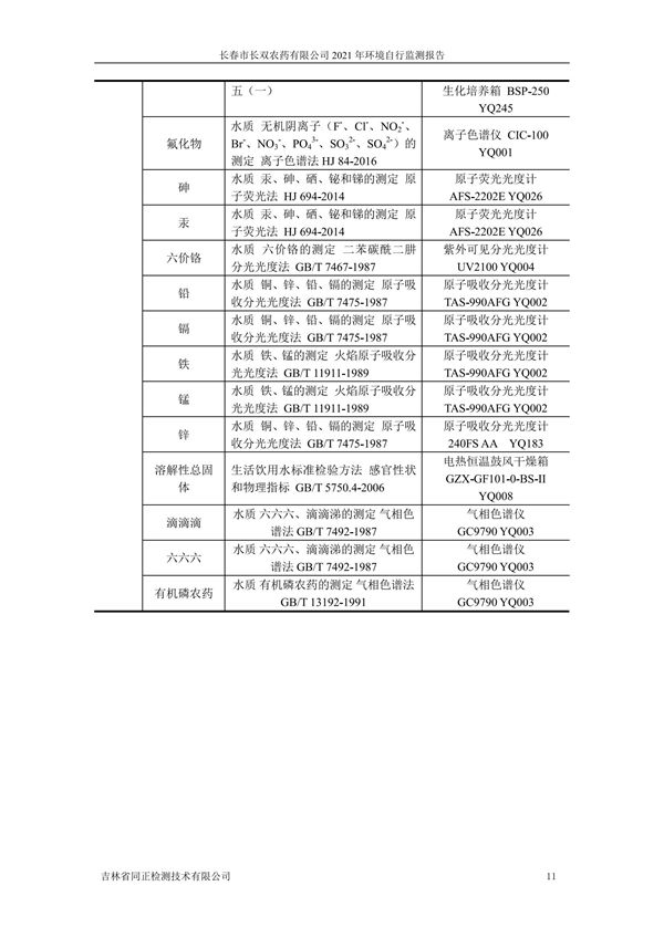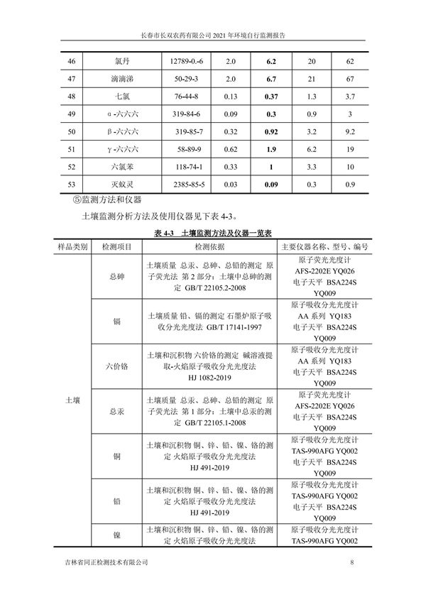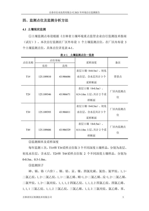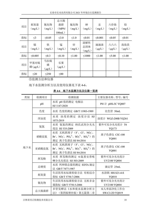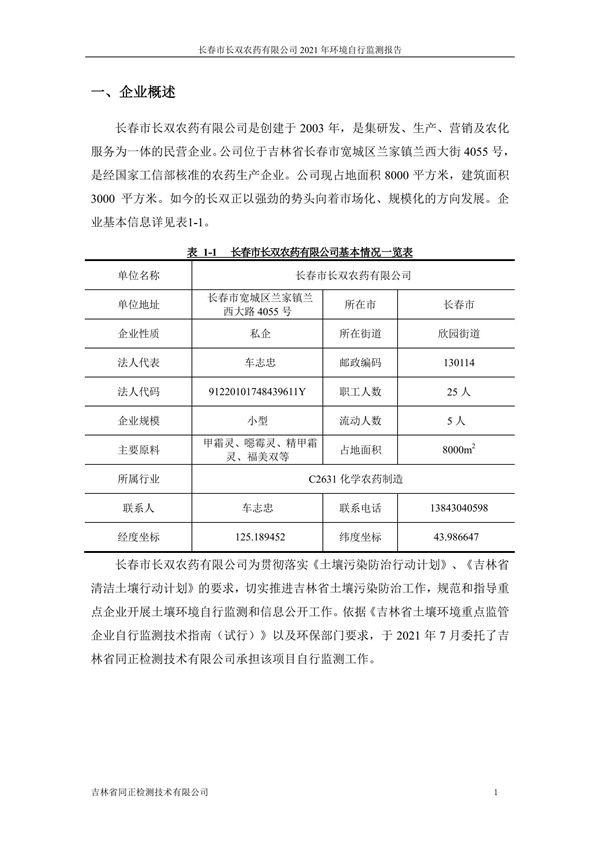 長春市長雙農(nóng)藥有限公司2021年環(huán)境自行監(jiān)測報告