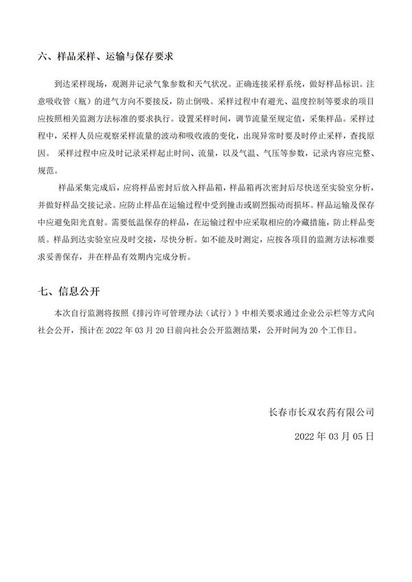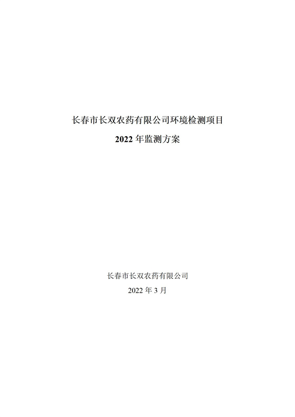 長春市長雙農(nóng)藥有限公司環(huán)境檢測項目2022年監(jiān)測方案