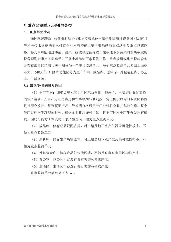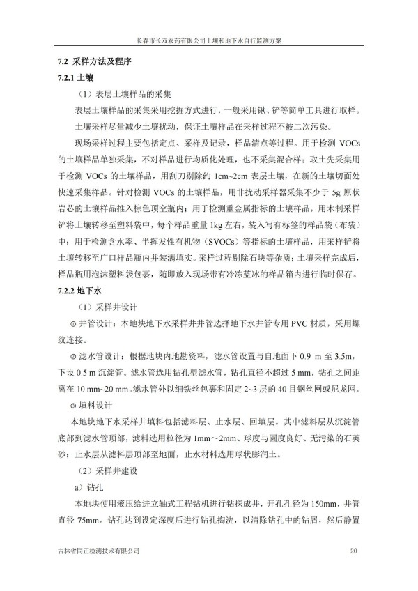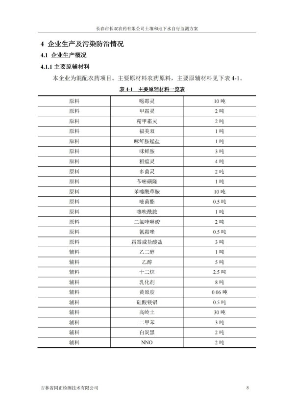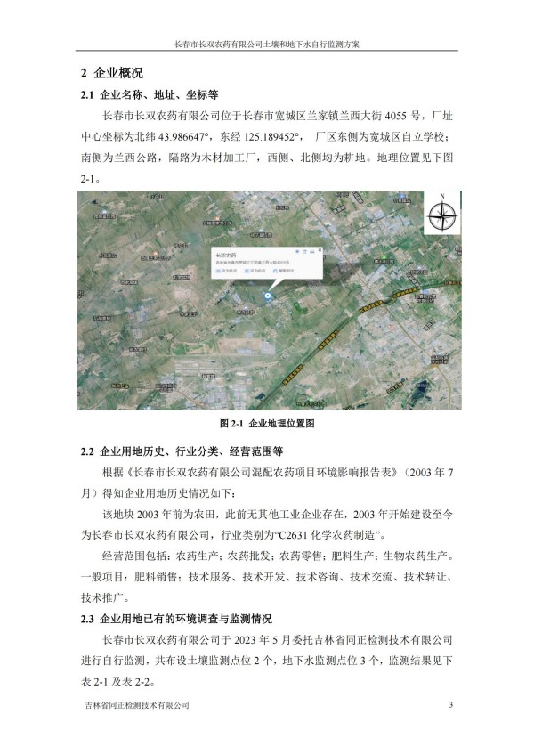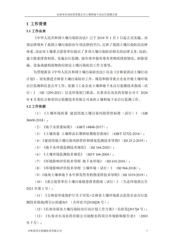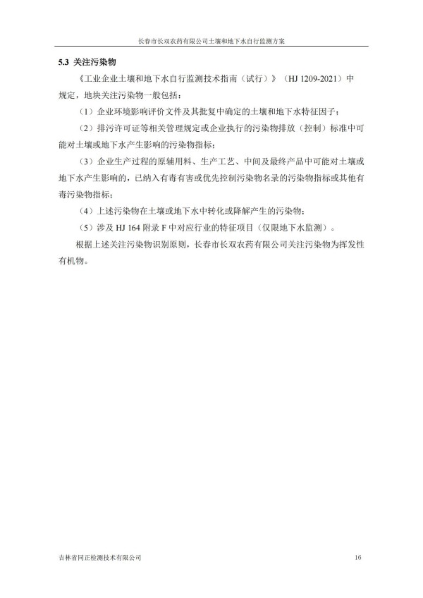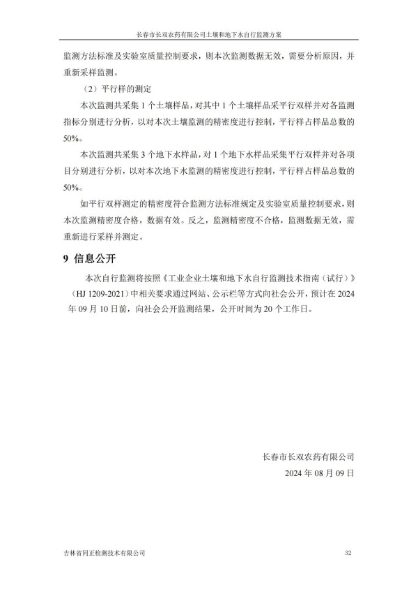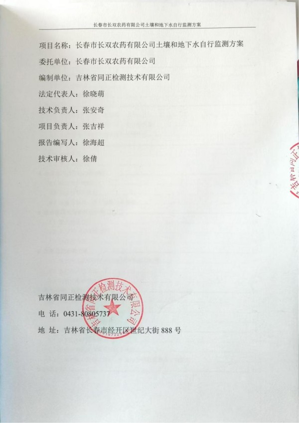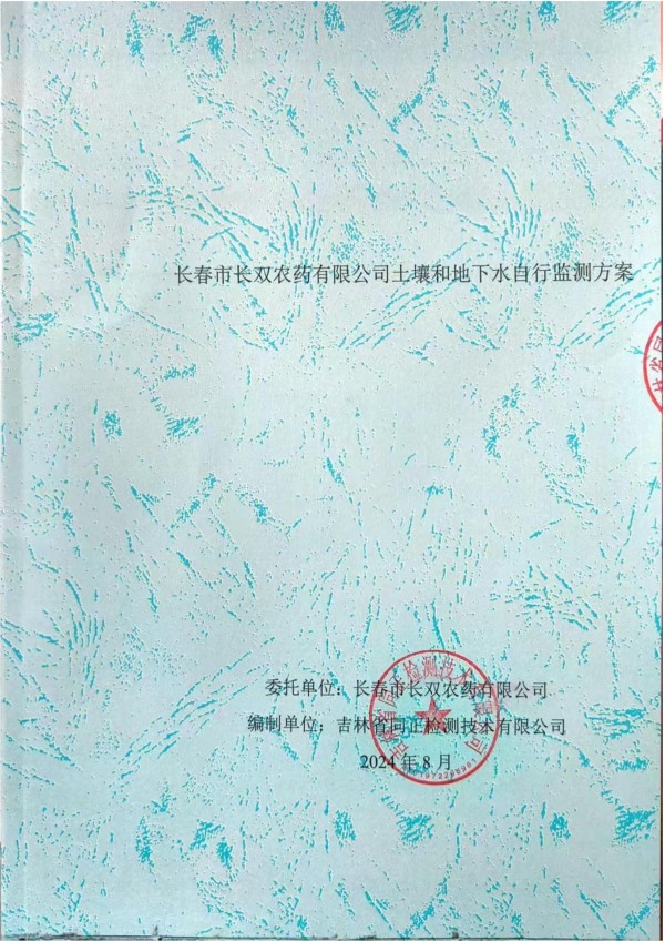 長春市長雙農(nóng)藥有限公司土壤和地下水自行監(jiān)測方案(2024度)