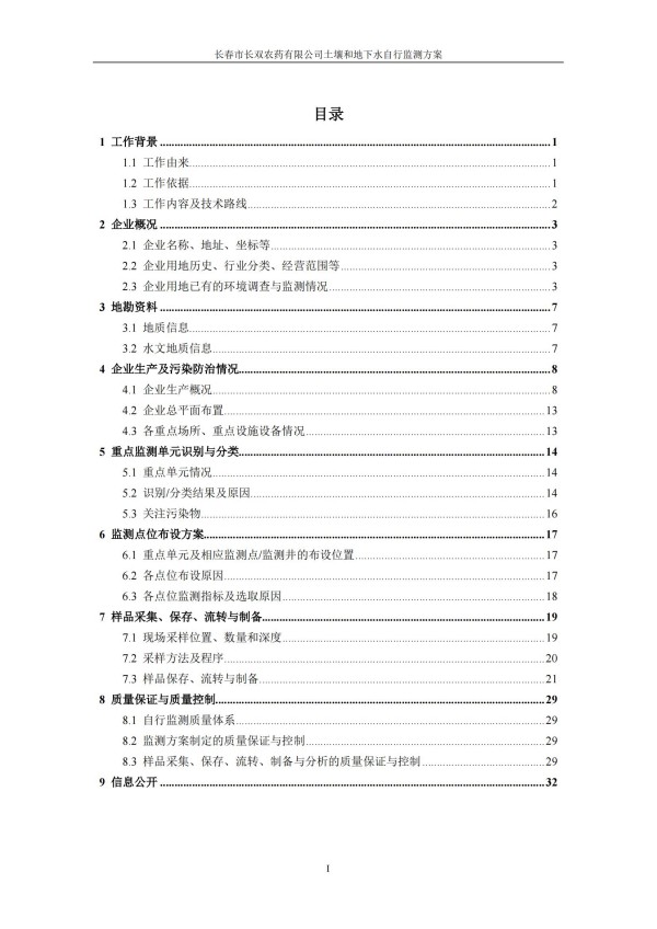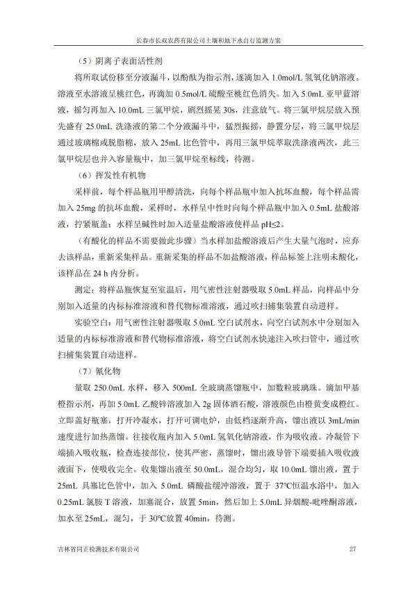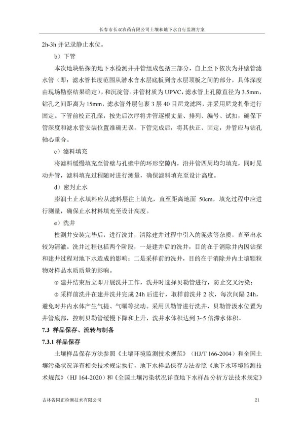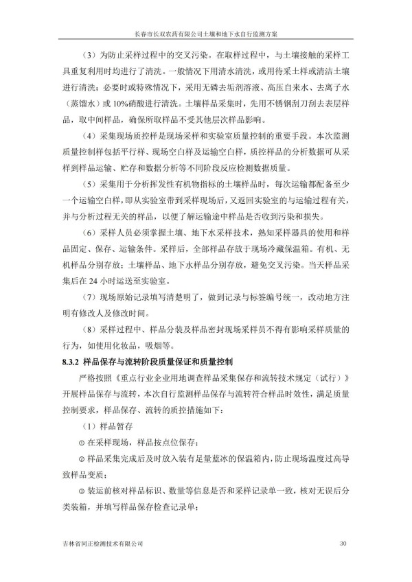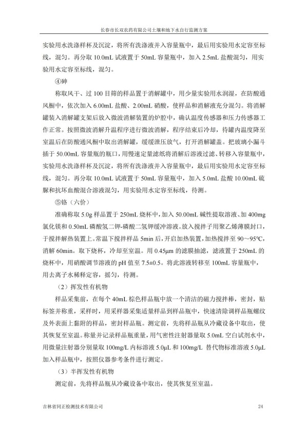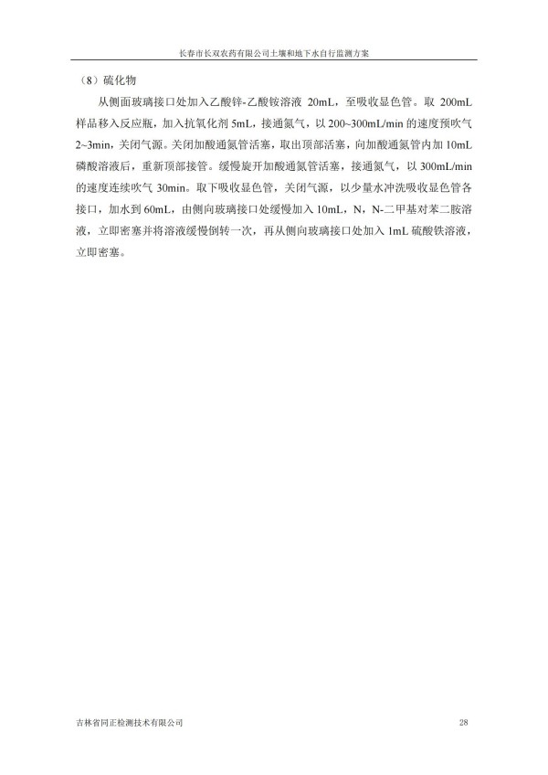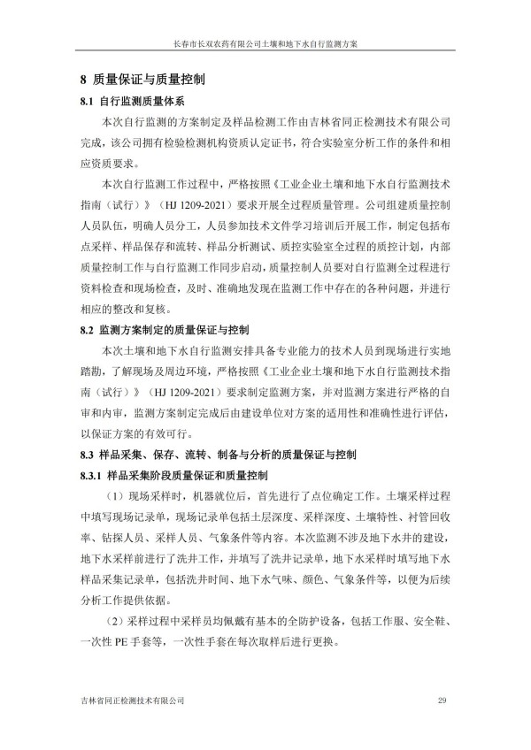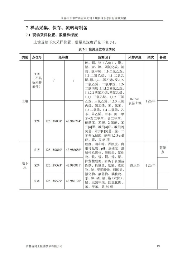 長春市長雙農(nóng)藥有限公司土壤和地下水自行監(jiān)測方案(2024度)
