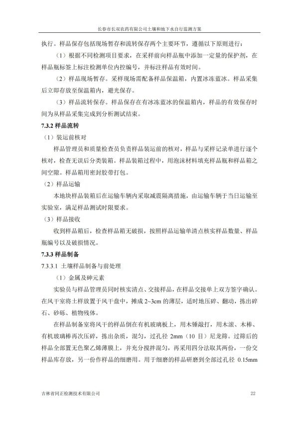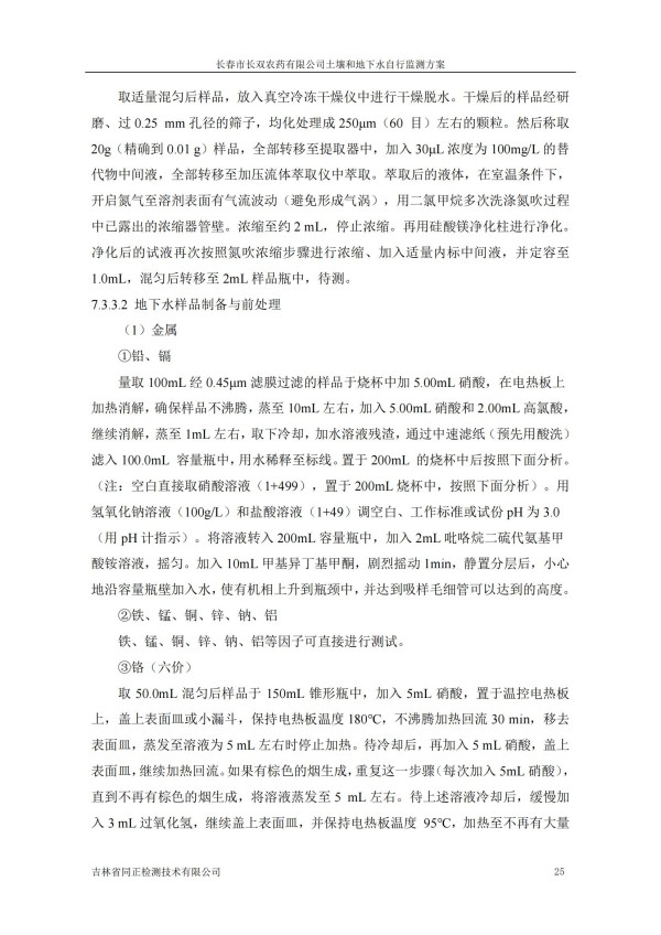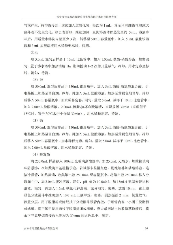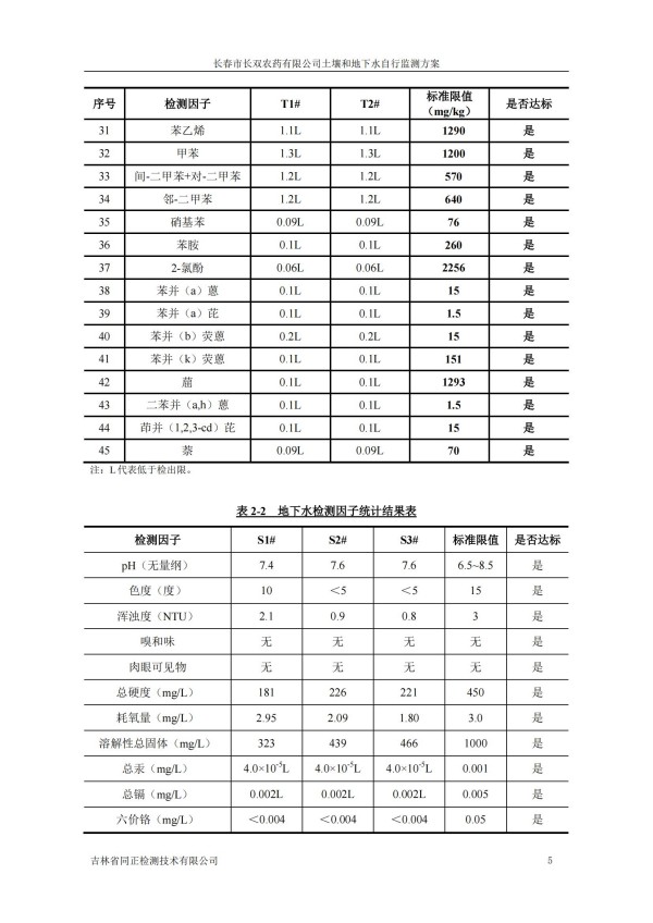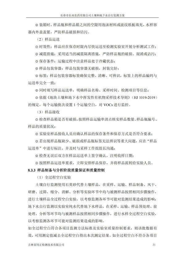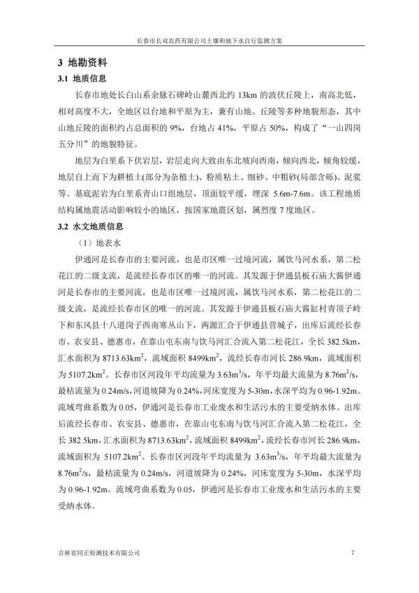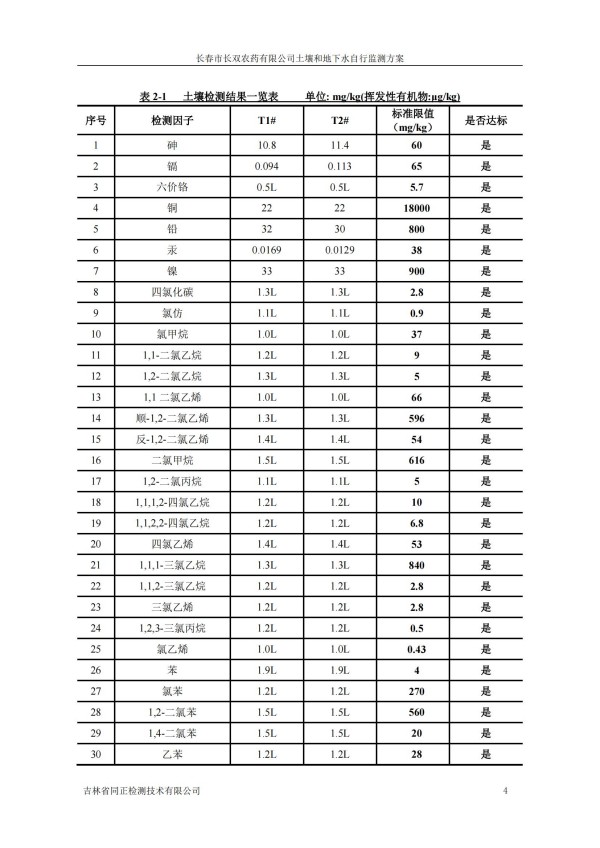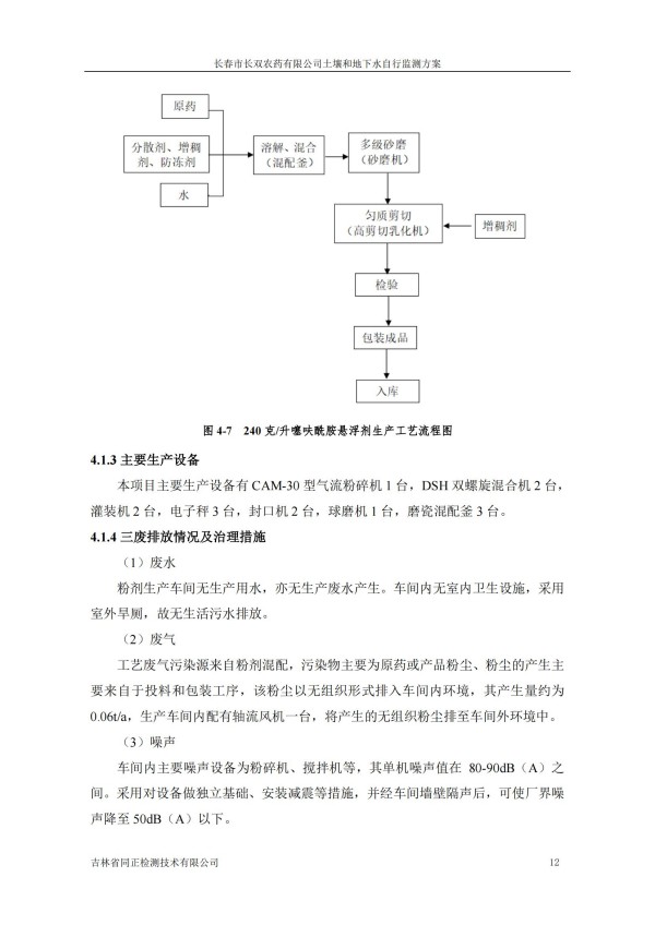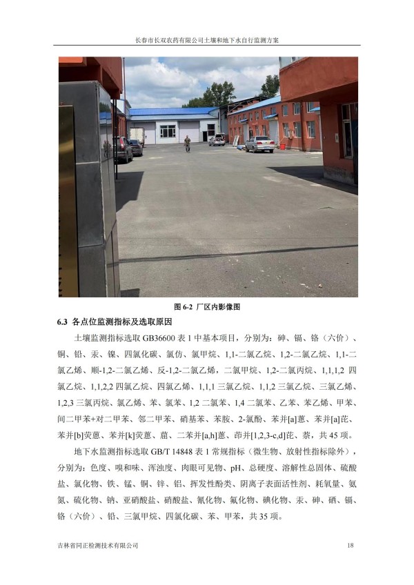 長春市長雙農(nóng)藥有限公司土壤和地下水自行監(jiān)測方案(2024度)