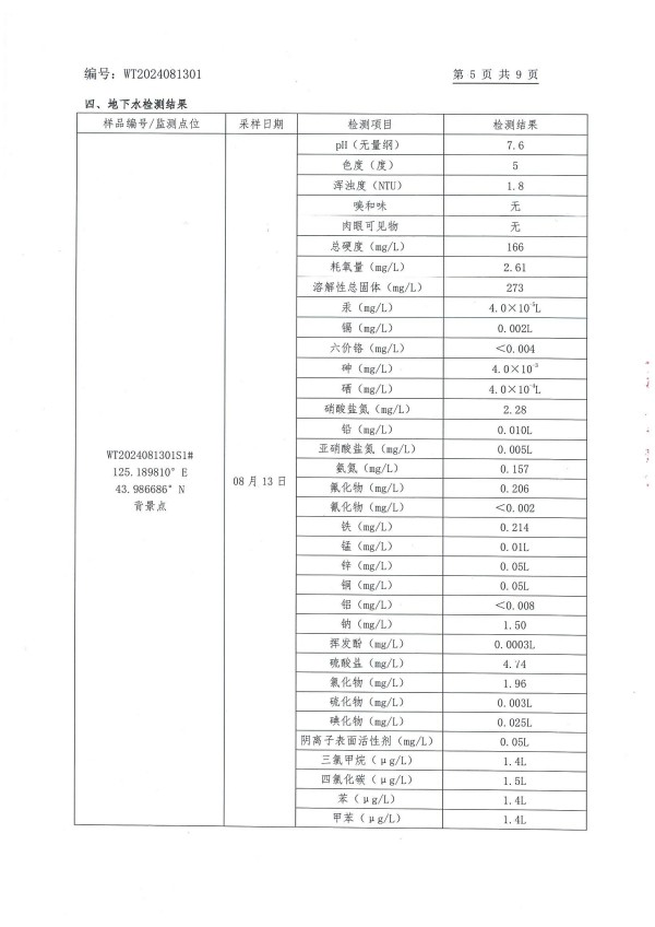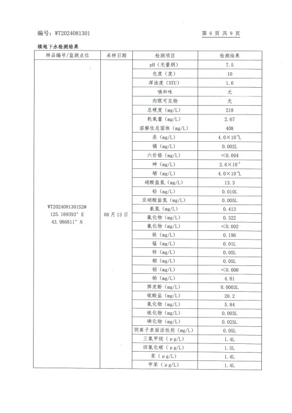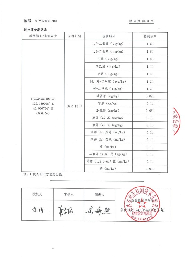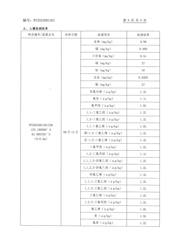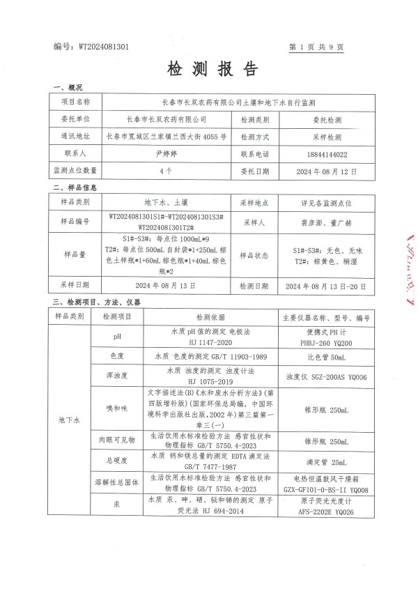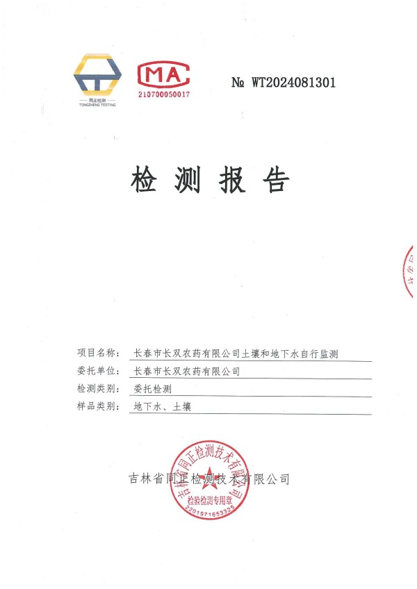 長春市長雙農(nóng)藥有限公司土壤和地下水自行監(jiān)測