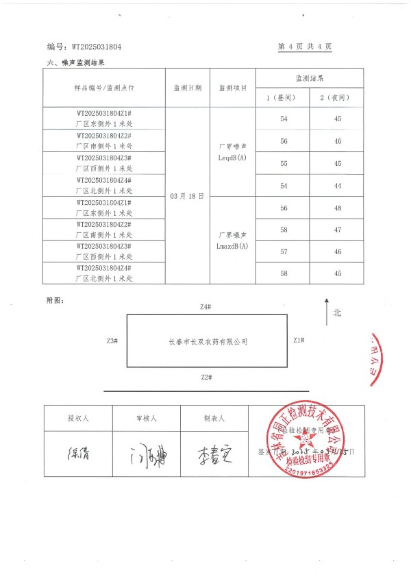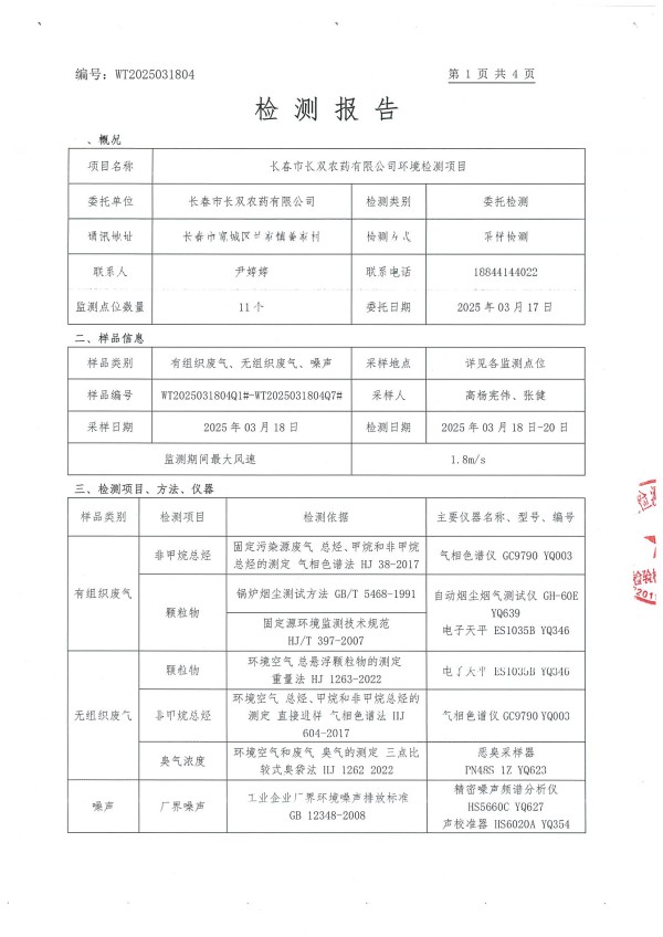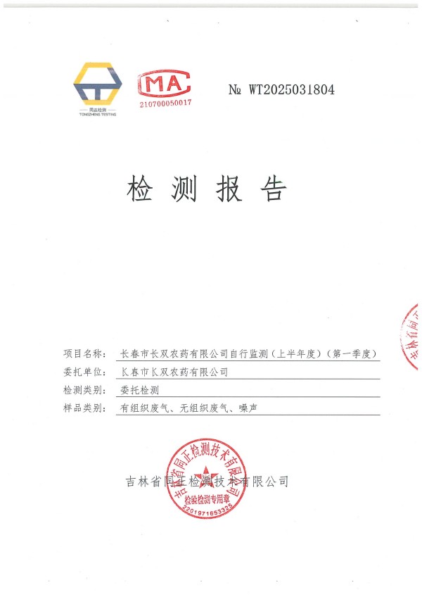 長春市長雙農(nóng)藥有限公司自行監(jiān)測(上半年度)(****季度)